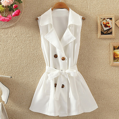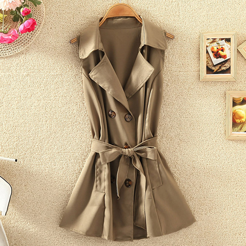 At this time,this sleeveless trench coat will play an important role. Completed with