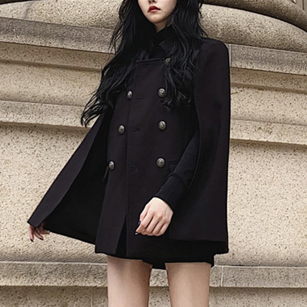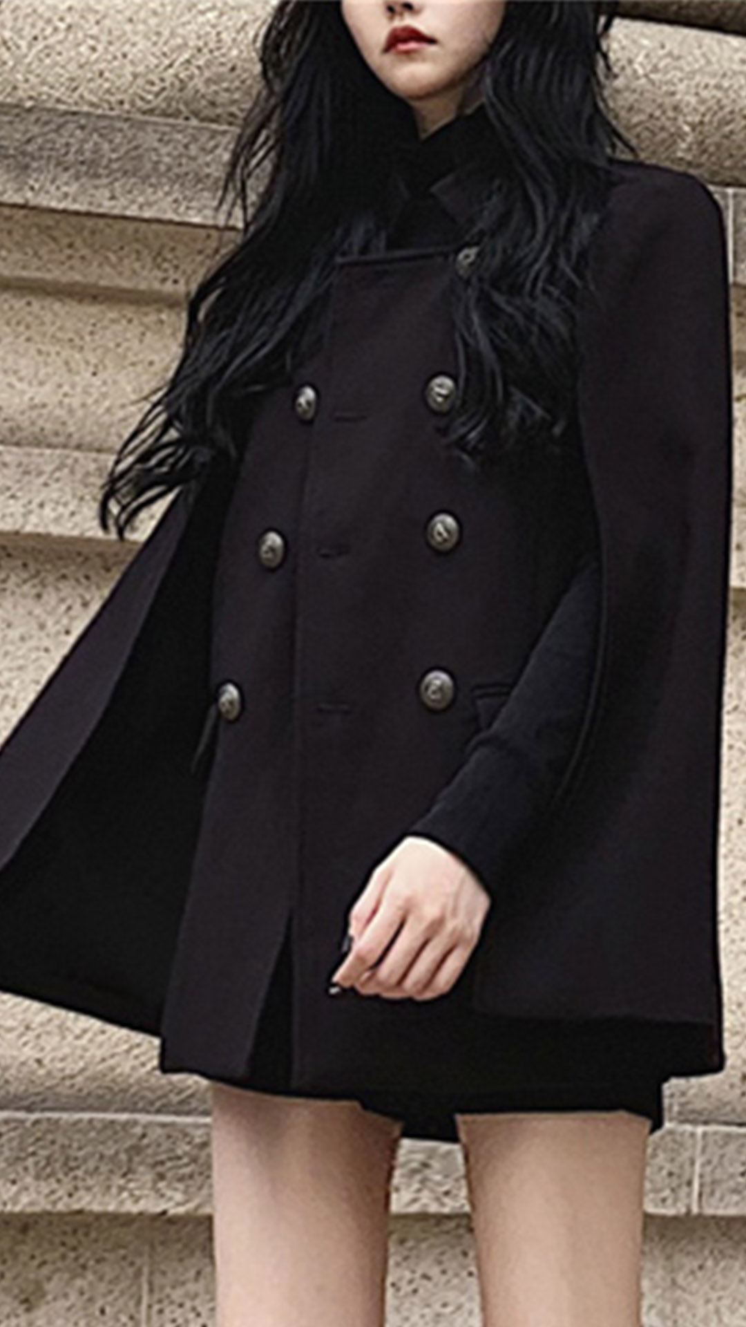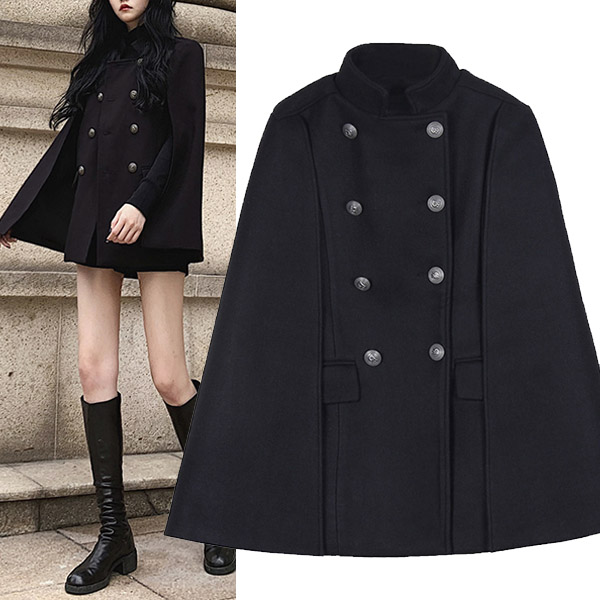You look so stylish and charming in this navy style coat. Cape-style design,with double-breasted design.