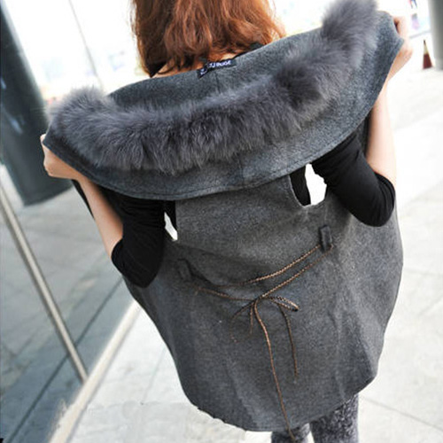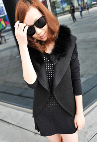 Fashion Faux Fur Collar Solid Color Woolen Vest