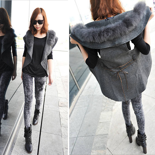 Having this vest,you will receive envious eyes and enjoy a happy day. It features solid color style,faux fur collar,warm and comfortable. Waist part with lace up design,help gather your waist and show your charming curve. A perfect choice for you in some cold days.