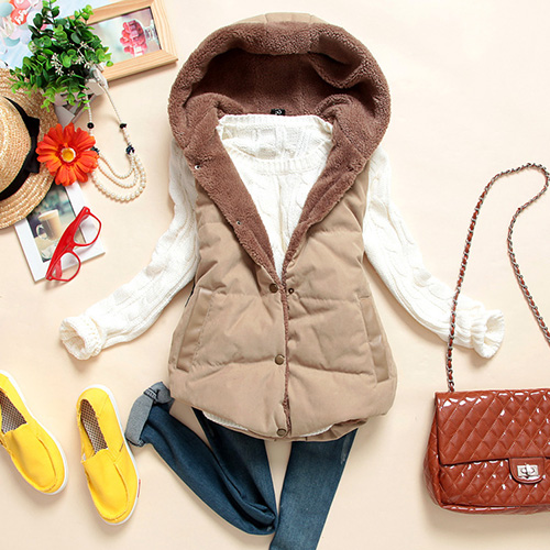 Vest coat is a must have in fall and winter. So if you don't have one,then what are you waiting for? Add this all-match vest coat to your wardrobe! Features hooded design,with plush,warm and soft. Easy to match.