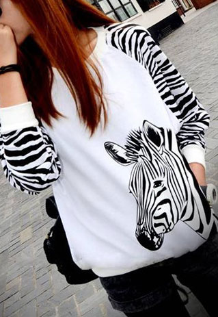 Relax and chill out in the Zebra Crewneck.This super comfy sweatshirt features allover zebra stripes bat sleeves,side zebra body graphic,and a loose fit.Pair this with your favorite ripped denim jeans for a chic look in seconds.