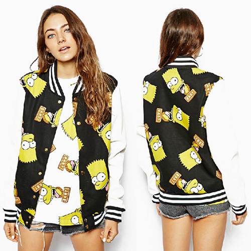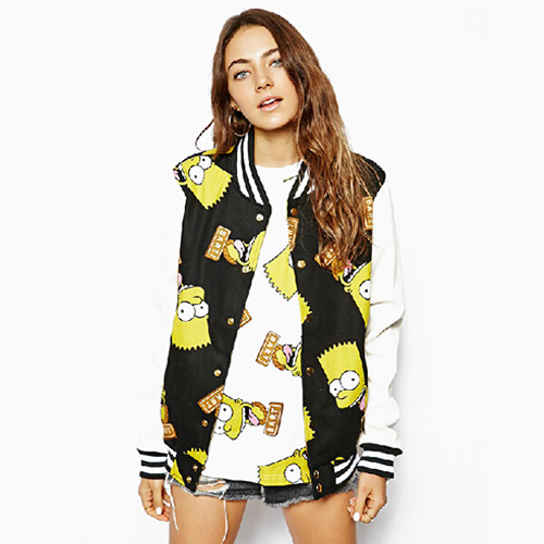 Show your youth and endless vitality with this cartoon pattern baseball coat. It
