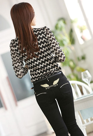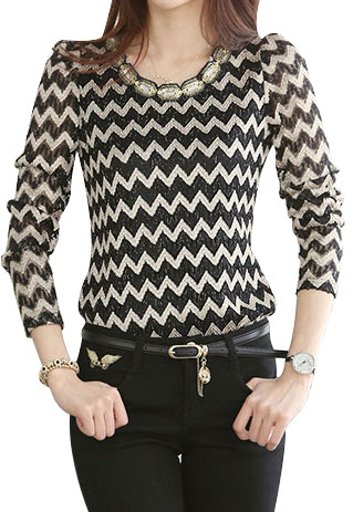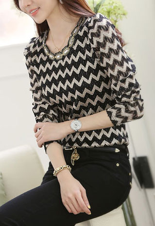 Cold weather is the best time for fashion gals to broadcast their fashion taste to the world. This fall, you can choose this black sweatshirt. It is characterized by the wavy stripe print, looks like the radio wavy. In it, you can broadcast your fashion taste to more friends. What' more, its beaded design make it looks retro and elegant. That adds high scores to your fashion taste. Wanna look slimmer and beautiful? You can try this one.