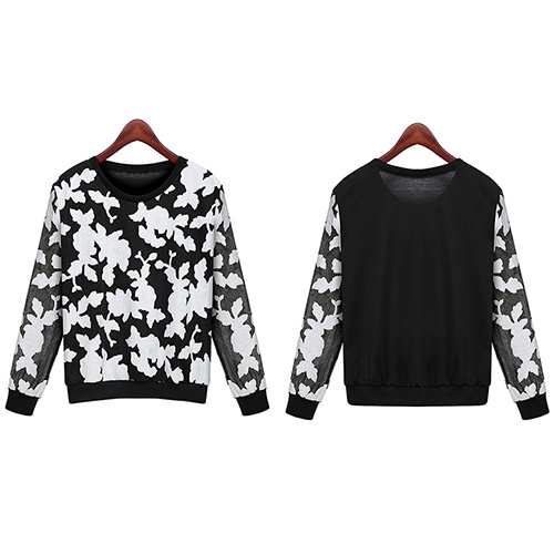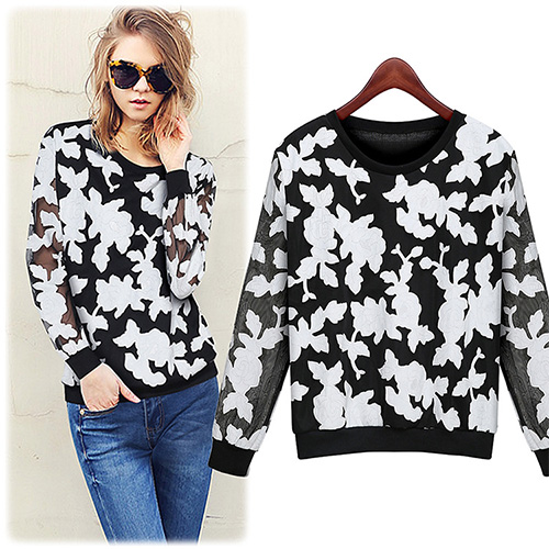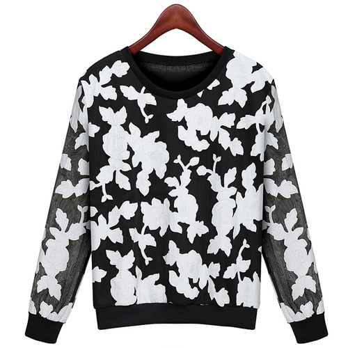 Ready for spending a wonderful autumn? Then keeping stylish and elegant dressup is necessary. How about this sweatshirt? It features floral print pattern,contrast color style, fashion round neck and lace long sleeve. You can pair it with jeans or floral print skirt.