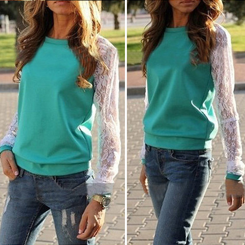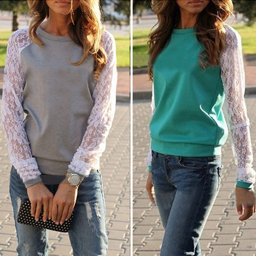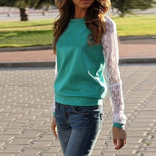 In your leisure time,you need such a casual sweatshirt accompany you. Crafted from skin-friendly and comfortable fabric. It features lace spliced long sleeve,fashion round neck. You can pair it with jeans.