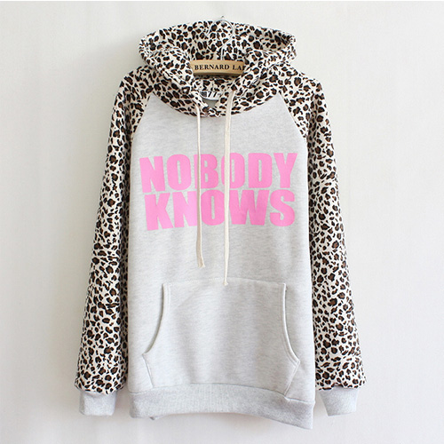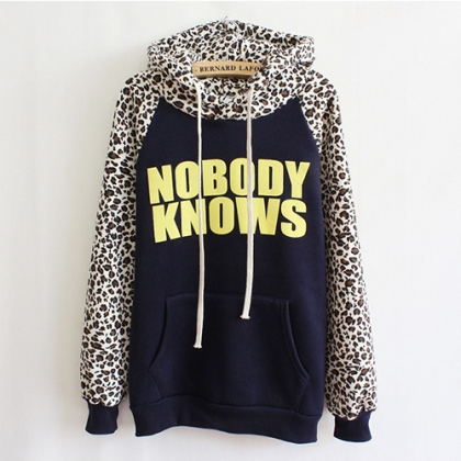 Combination of comfort,chic and stylish elements all in one. Contrast color style,with leopard spliced design and letters print pattern,fashion and popular. Long sleeve,hooded design,with drawstring. Soft and skin-friendly fabric,comfortable to wear. Easy to match.