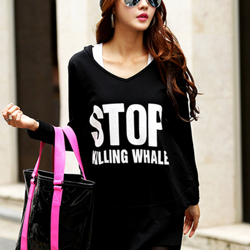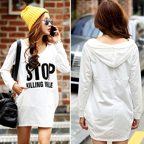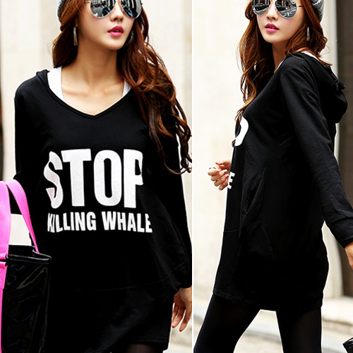 Crafted from cotton material,soft,skin-friendly,breathable and comfortable. Slim cut design,show your slim figure and generous beauty. Fashion v-neck,hooded style,letters print pattern and long length design. Perfect for matching with leggings or tight pants.