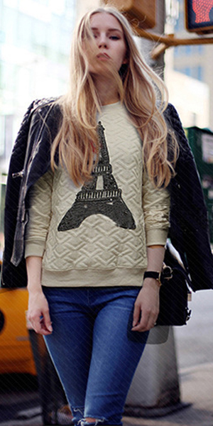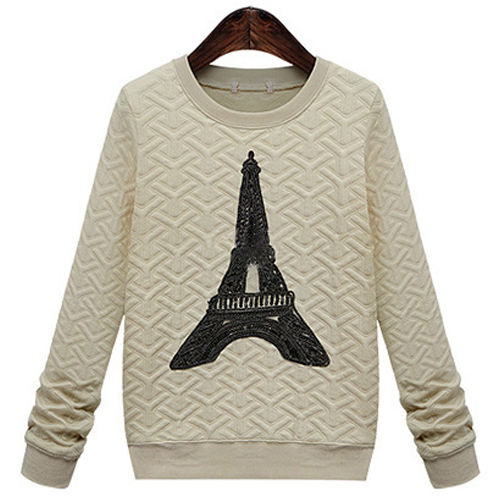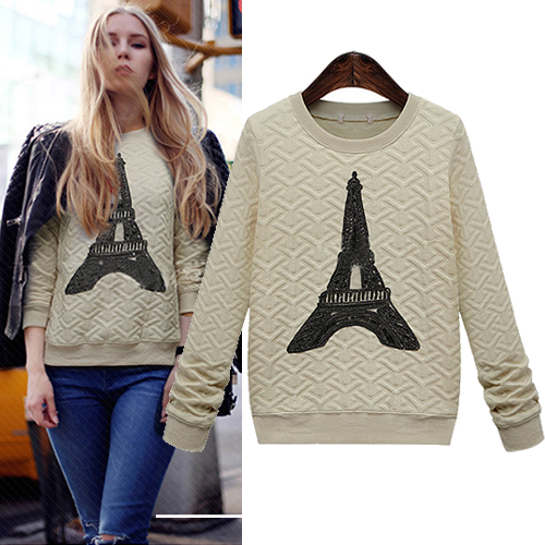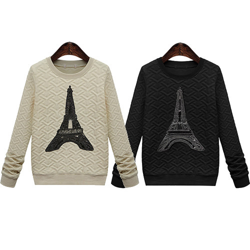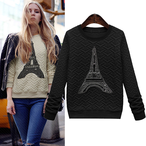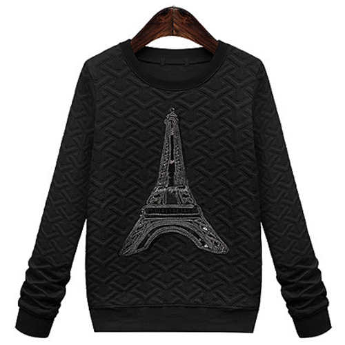 is a shining example of just that. Features solid color with long sleeve,round neck and iron tower pattern,
