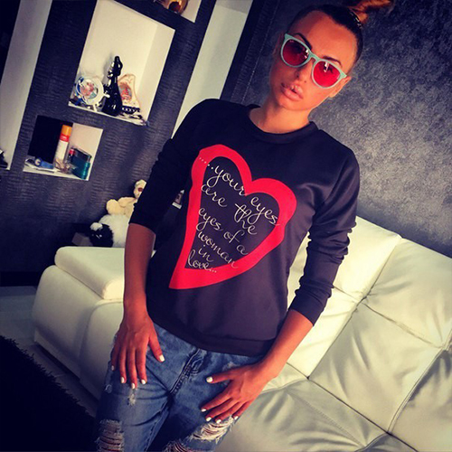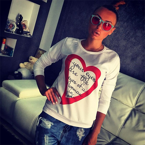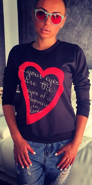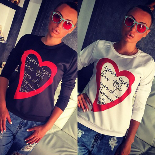 perfect sweatshirt: long sleeves, round neck, ribbed trim, and a relaxed fit. Plus,its love heart and letters