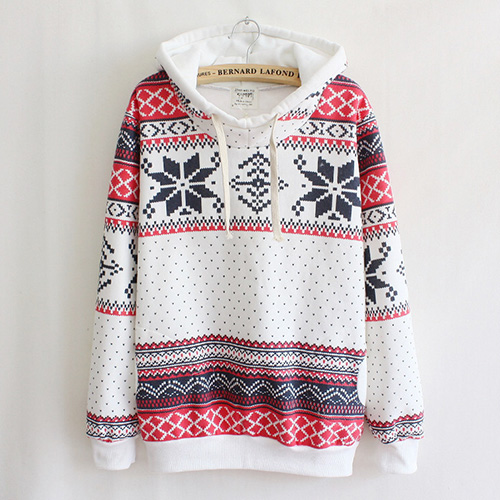 Fashion Mixed Color Snowflake Pattern Hooded Sweatshirt