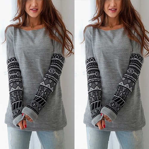 in these chilly mornings and nights. It features printed spliced long sleeve,round