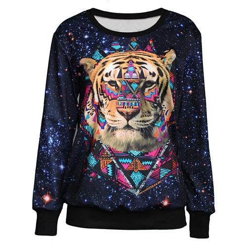 Fashion Starry Sky Tiger Pattern Long Sleeve Sweatshirt for Lovers