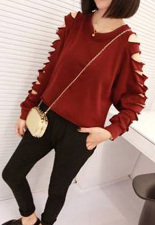 Have you noticed that when you are in this chic sweatshirt, you will be the focus wherever you are? Is it amazing? What makes you different and popular? It is the sleeve design. This pure color sweatshirt features the batwing sleeve design which is stripe cutout. That makes it looks sexy, chic and stylish. In it, you will look fashionable, cool and slimmer. Like it, add it to your wardrobe.