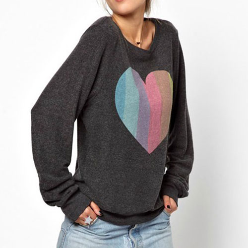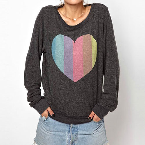 -This sweatshirt features the heart print which is forms by vertical stripe print.