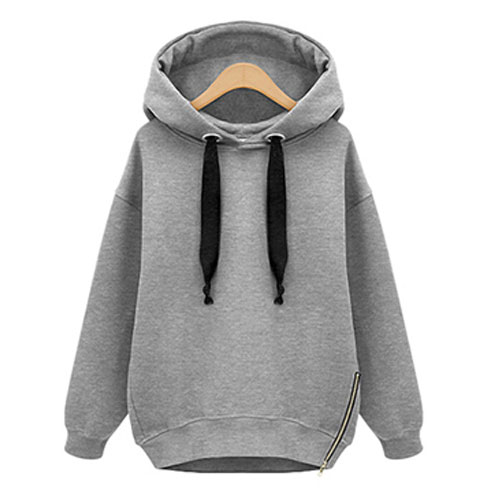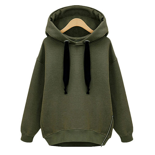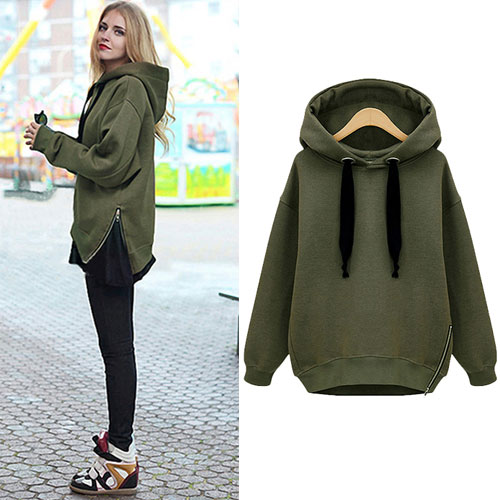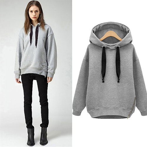 Sweatshirt is an essential piece in everyone's wardrobe no matter what season. This piece is perfectly suitable for this season. It features long sleeves, a drawstring hood, with zipper detail on the side hem, fully lined with fleece. Pair it with some black skinny jeans.