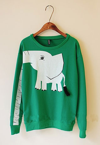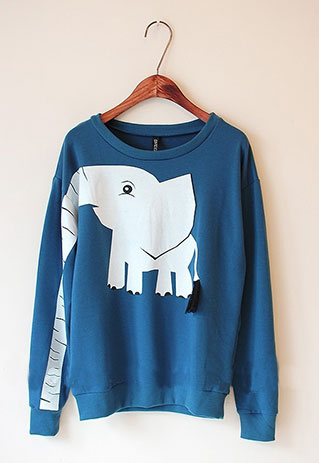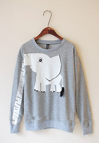 Little white elephant print, like it? If you like. buy our elephant print sweatshirt. Features the white elephant print, it looks cute and chic. In it, you will feel like enjoying in the zoo. Made of cotton. Soft and comfortable. Add it to your wardrobe, fashion gals.