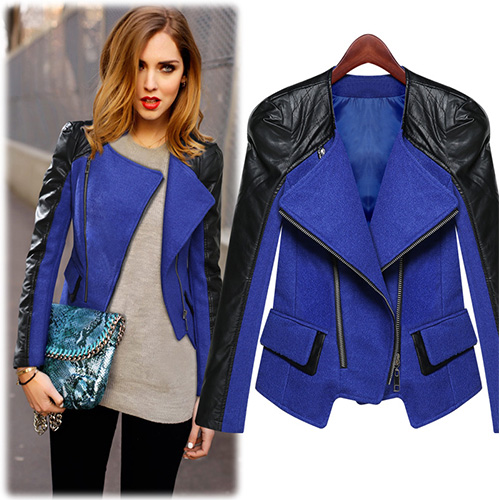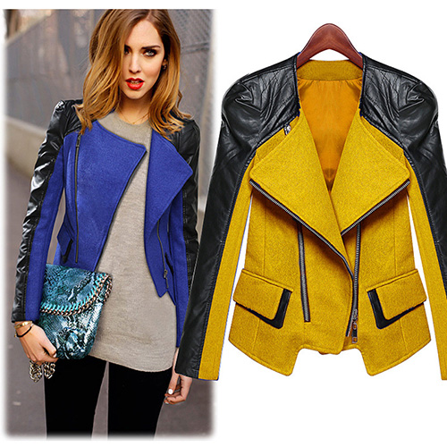Achieve your fashion and elegant look through this cool motorcycle jacket. Featuring contrast color style,front zipper closure,big lapel design and with two hand pockets. Pair it with jeans or PU leather pants,you will be the fashion focus.