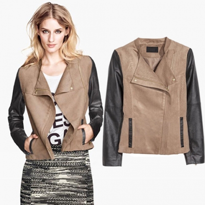 Show your cool and stylish flavor with this motorcycle jacket. Featuring contrast color style,stand collar,long sleeve with zipper design. Front zipper closure,with two side hand pockets. Try to pair it with simple t-shirt and jeans.