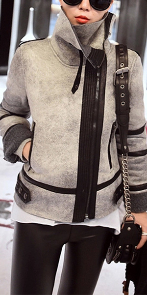 front zipper closure and zipper pockets,classic and stylish. Dress it up with your tight pants and boots!