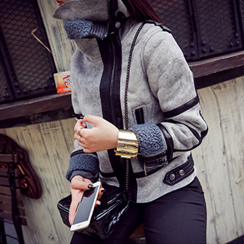 faux suede material with plush lining,can keep you warm and comfy all day. Completed with long sleeves,lapel,