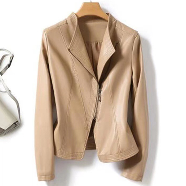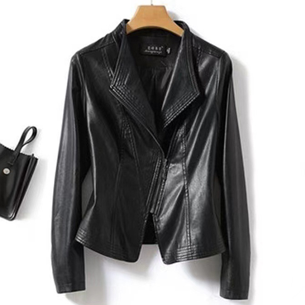 Fashion Long Sleeve Lapel PU Leather Jacket
