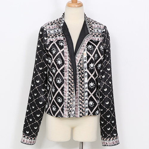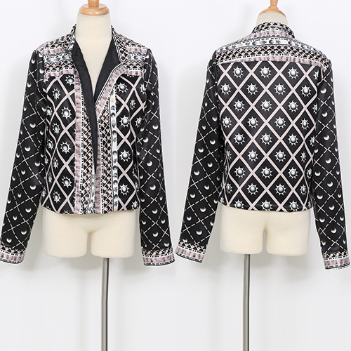This jacket is printing, lace spliced ,a single-breasted and uses a collar design, it is super thin and
