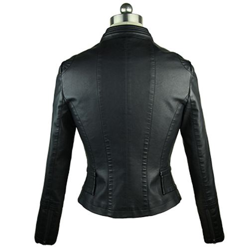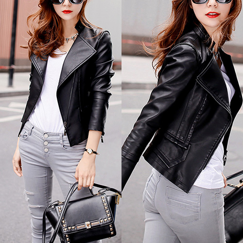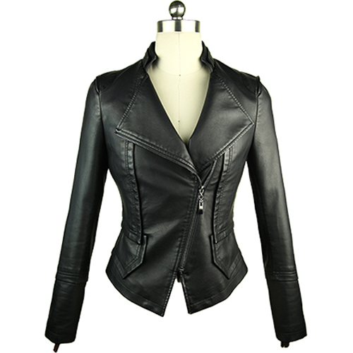 This moto jacket is completed with long sleeve,notched collar,asymmetrical zipper front and hand