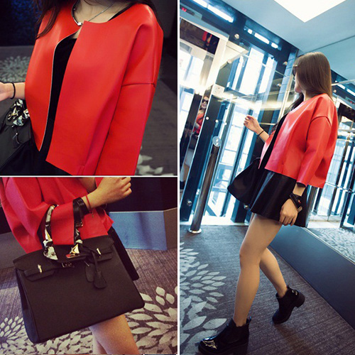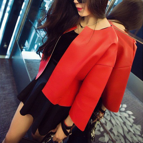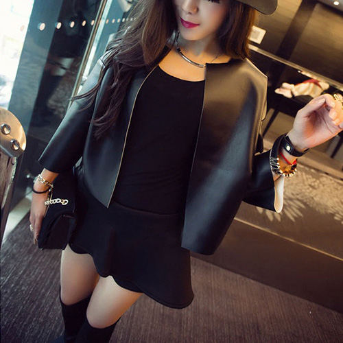 You absolutely will receive envious eyes because of this leather coat. Crafted faux leather material,durable and waterproof. It features solid color,3/4 sleeve design. You can pair it with skirts or shorts.