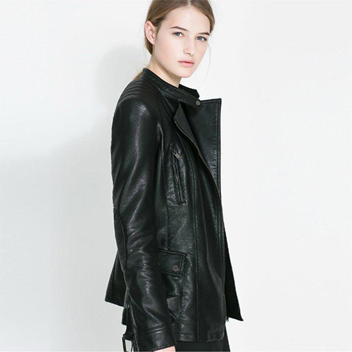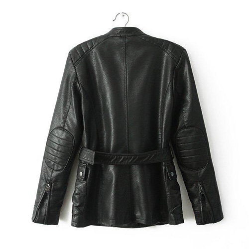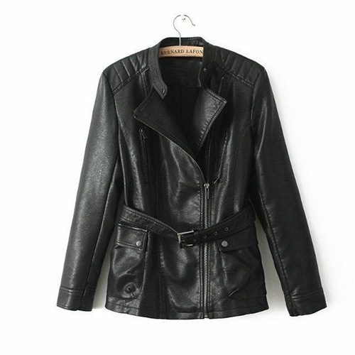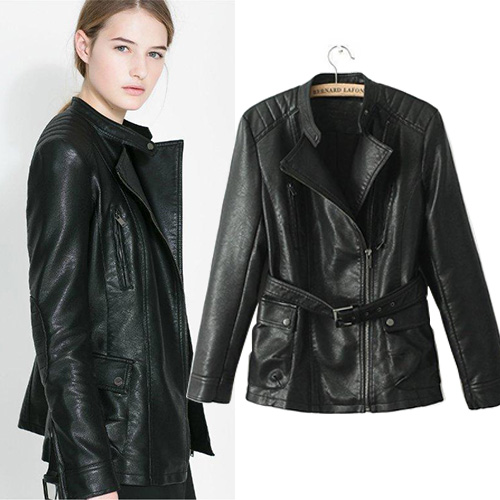 Show your elegant temperament and unique style with this leather coat. Features fashion stand collar,long sleeve and zipper closure. With waistband design,help to show your slender figure.