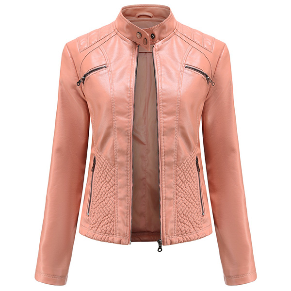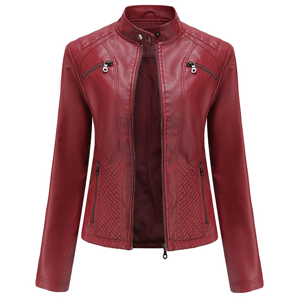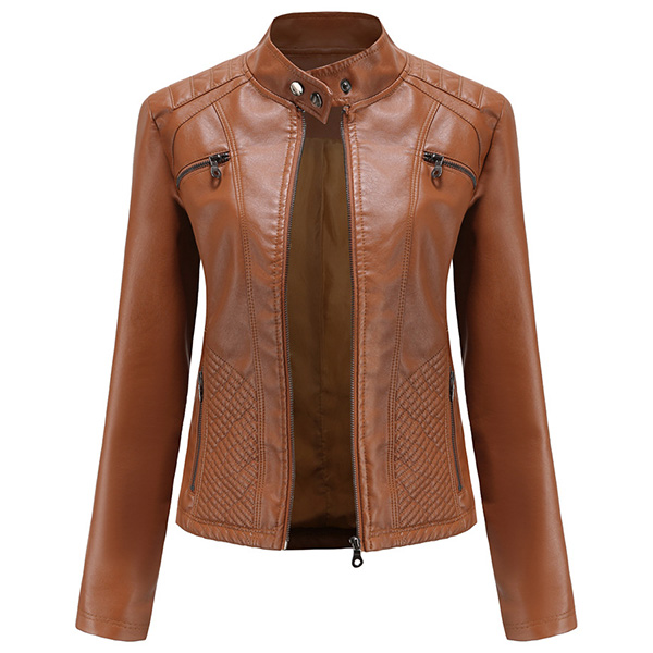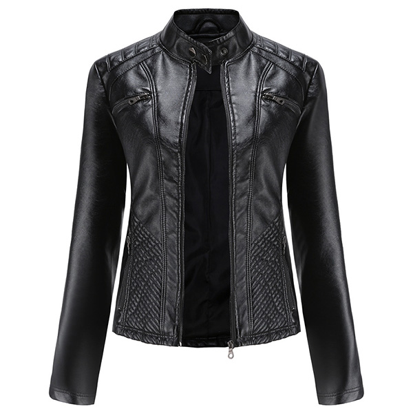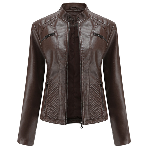 Fashion Stand Collar Single-breasted PU Leather Coat