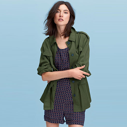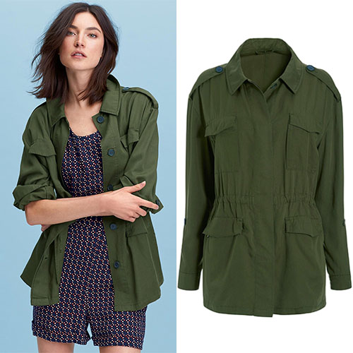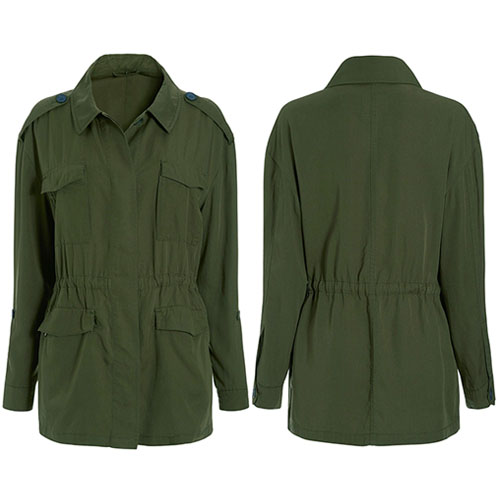 long sleeve,single-breasted,an elastic waist and a basic collar. Four pockets design makes it more practical.