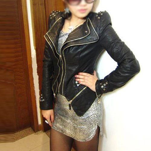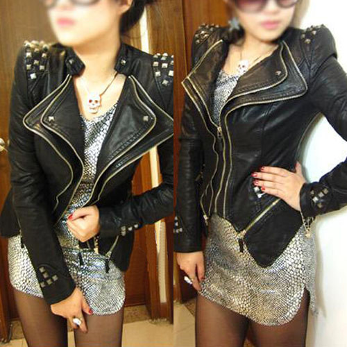 Retro Rivet Long Sleeve Slim Fit PU Leather Motorcycle Jacket