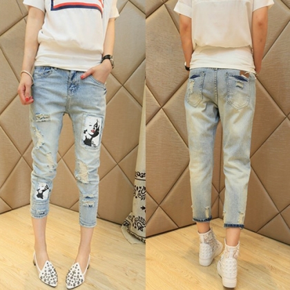 Distressed style,with ripped design,retro and stylish. Its skinny design can perfect show off your slender legs.