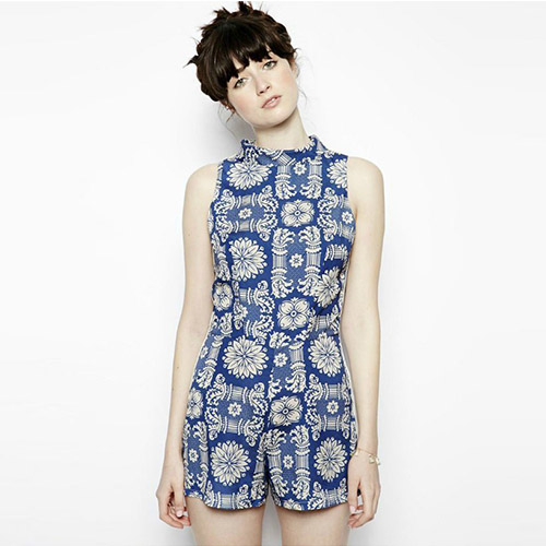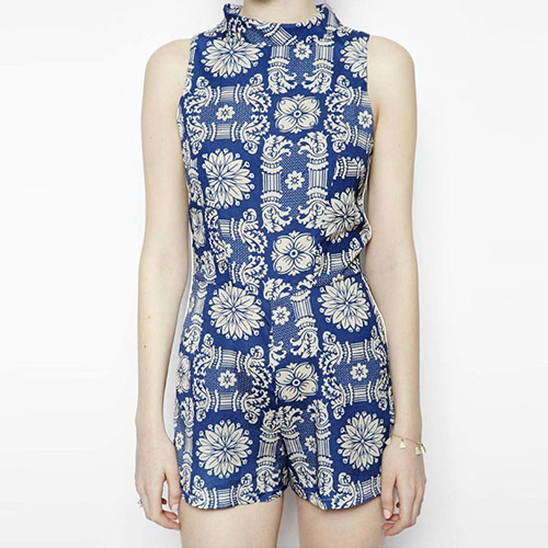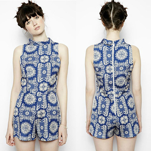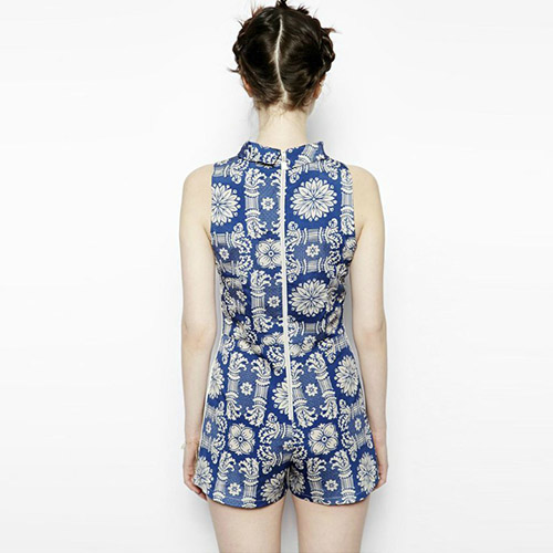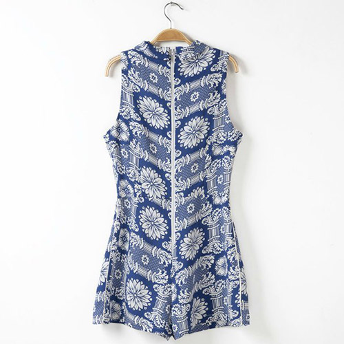 This jumpsuit features chic Blue & White Porcelain print pattern,with sleeveless and