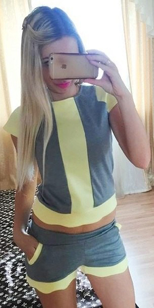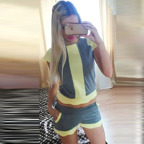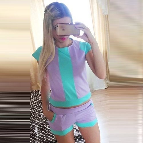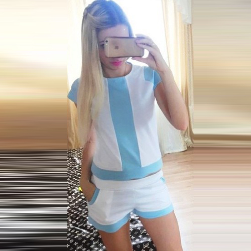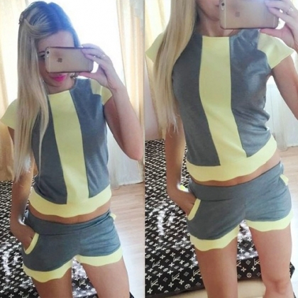 breathable cotton fabric. Contrast color style,tops with short sleeve and round neck design.