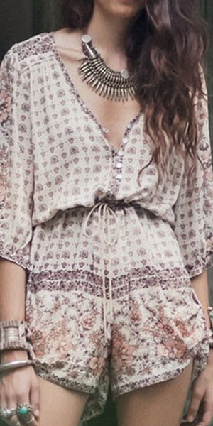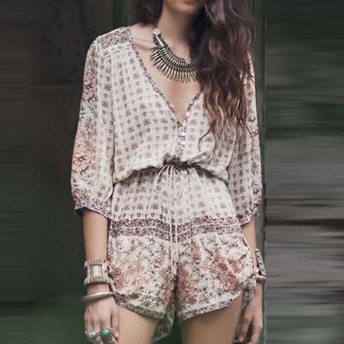 Fashion Floral Print 3/4 Sleeve Chiffon Jumpsuits