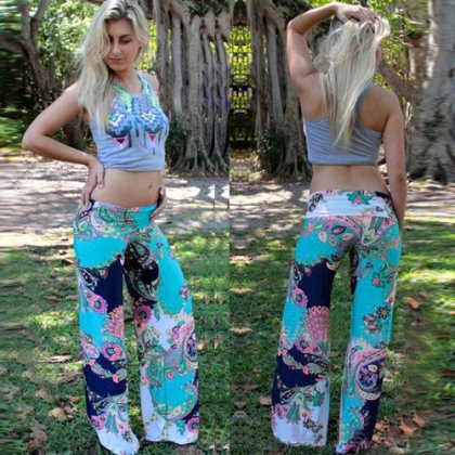 Enjoy the casual and comfortable feeling with this wide leg pants. Features chic floral print pattern,