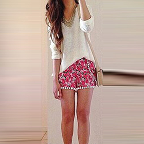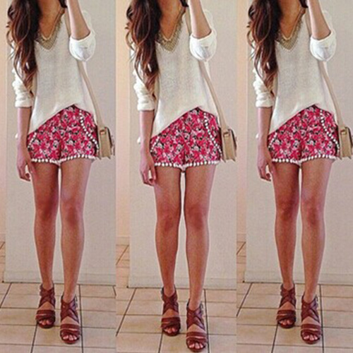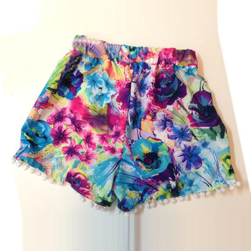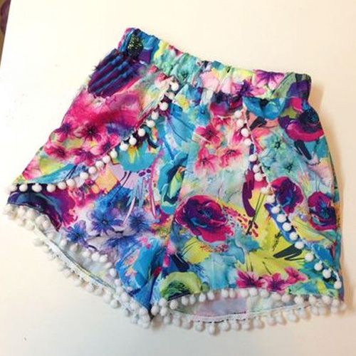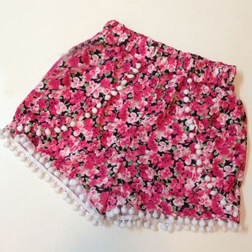 This shorts features floral print pattern,sweet and stylish. Hemline with balls for decoration,