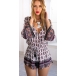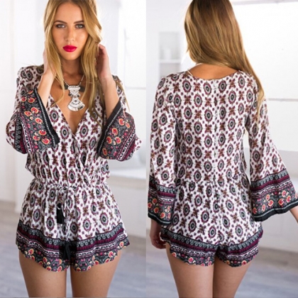 It features abstract floral print,with trumpet-sleeve,v-neckline and elastic waist,this piece strikes a