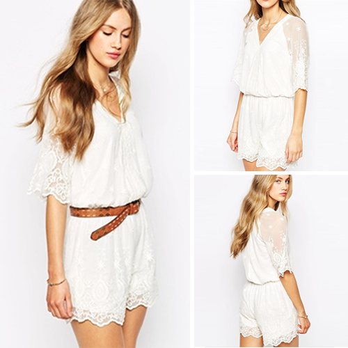 one-shot solution for dressing on the fly. It features lace spliced style,with a v-neck