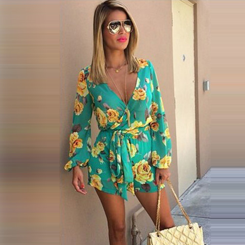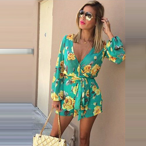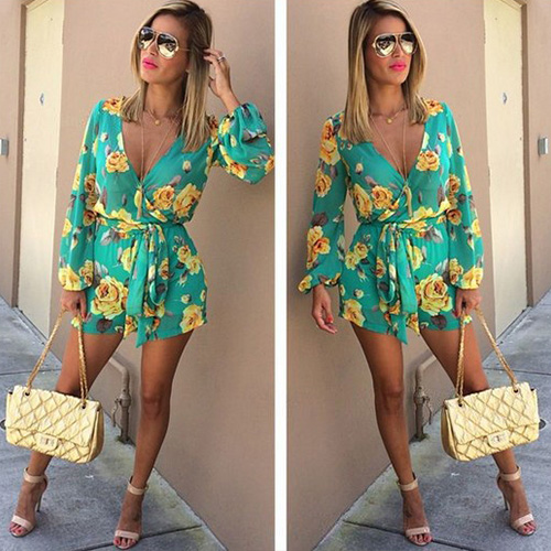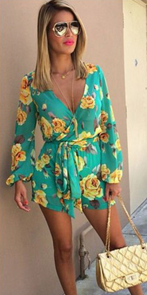 Summer style looks a lot like this long sleeve jumpsuit! Boasting a vibrant floral print and a v-neckline,