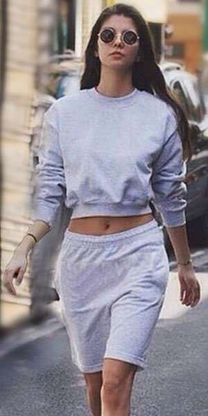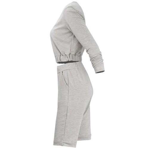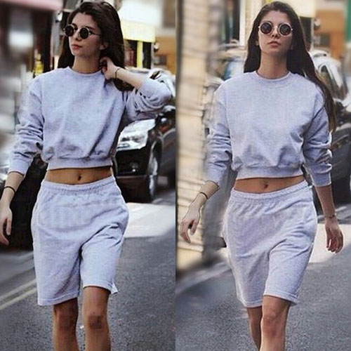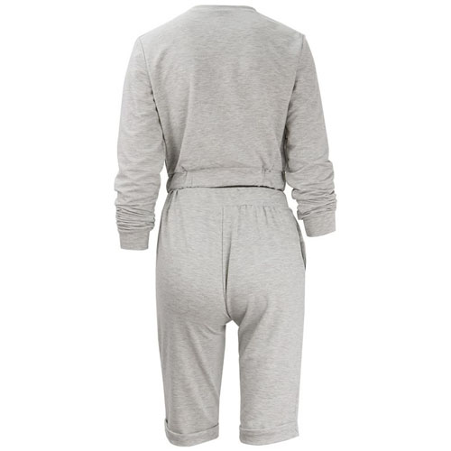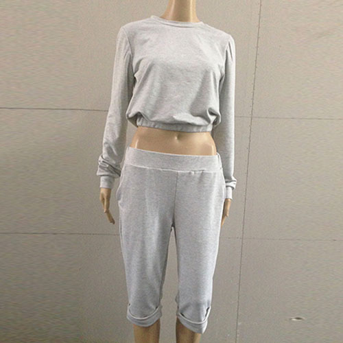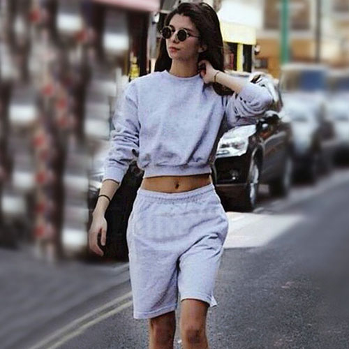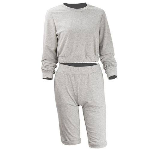 Including a long sleeve round neck crop top and a shorts. Solid color style,crafted from soft