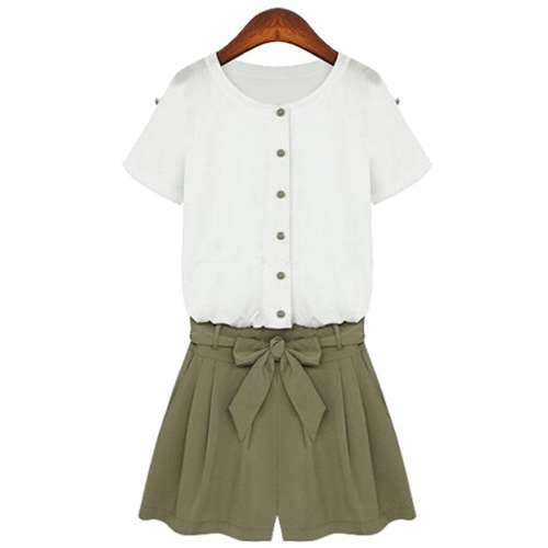 with short sleeve,round neck and front buttons design. Show your modern city style and charming sense
