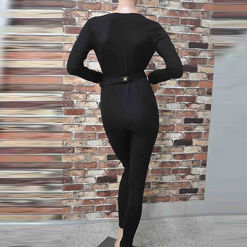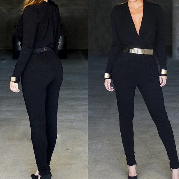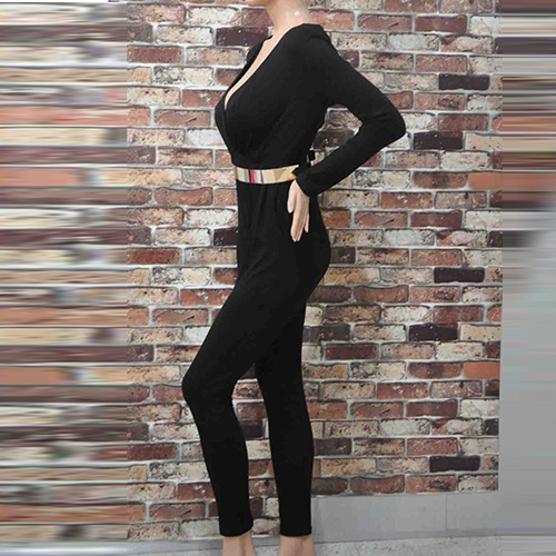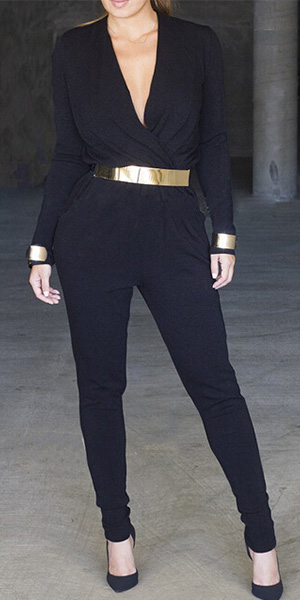 This jumpsuit features black color,gives you a kind of sexy,mysterious and flattering feeling.