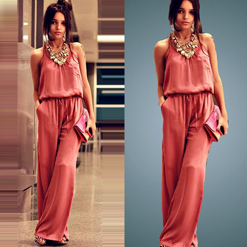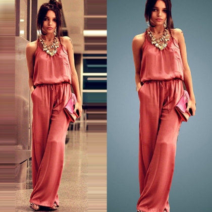 Features solid color style,with adjustable straps and elastic drawstring waist.