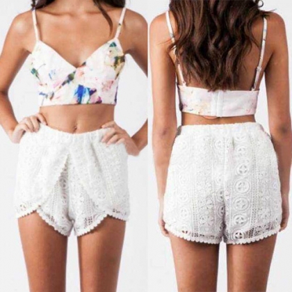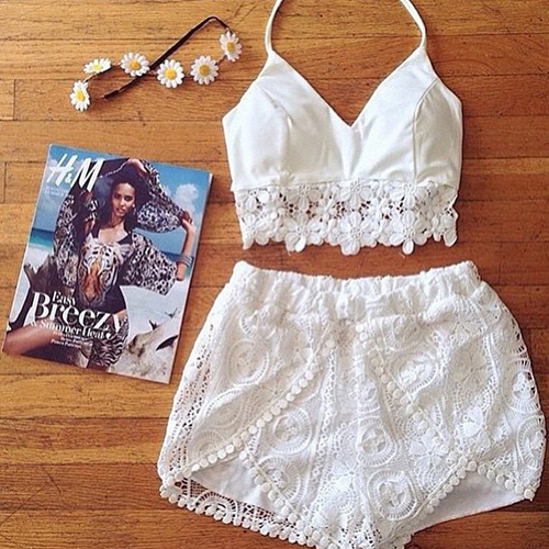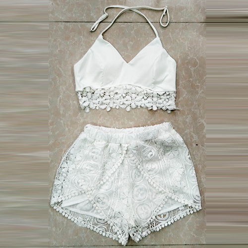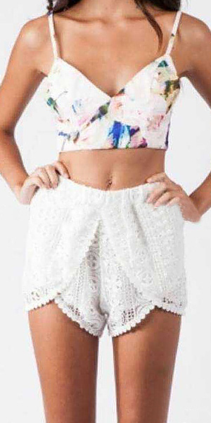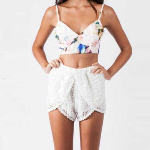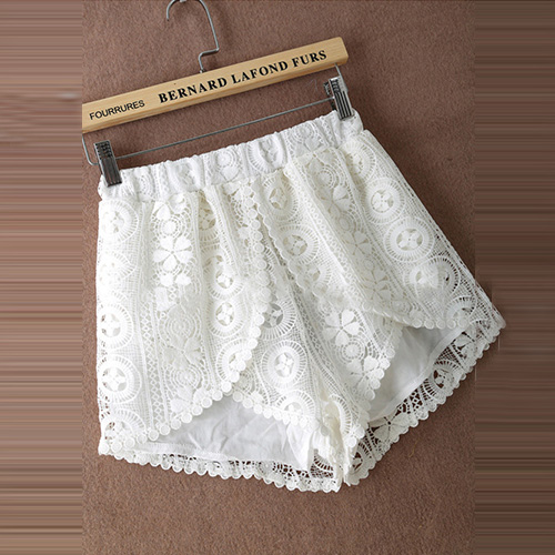 Fashion Solid Color Hollow Out Lace Crochet Shorts