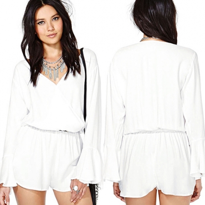 This romper will help you catch the fashion trend. It features solid color,with long sleeve,v-neck