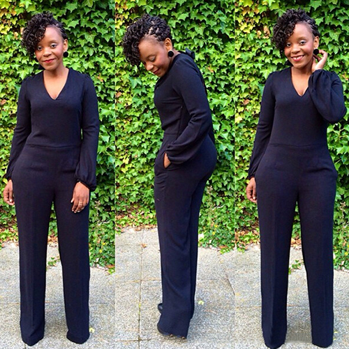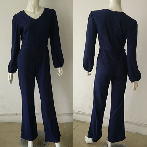This jumpsuit features solid color style,looks elegant and generous. Completed with long sleeves,