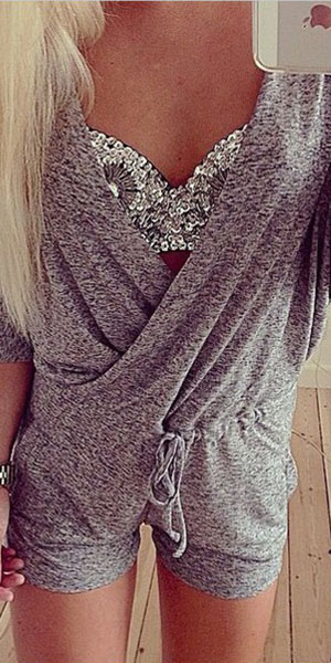 It features solid color,looks generous and dignified. V-neck design adds its sexy flavor.